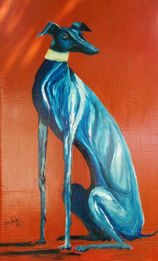 GALGO AZUL- 2017 Óleo sobre cartão colado em MDF 60x165 cm (Coleção particular)